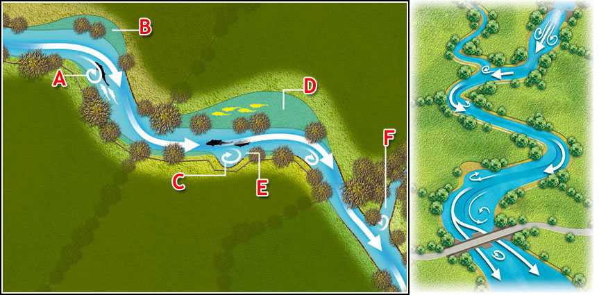 Ко всему прочему, на реке появляются новые типы мест ловли, нехарактерные для стоячих вод. Всё это побуждает рыбака использовать особую тактику и применять специальные, «речные» снасти.