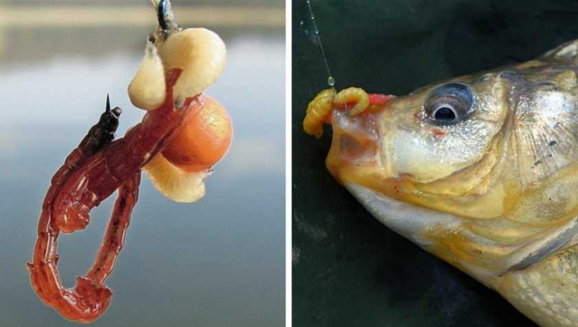 Использование двух составляющих в одной наживке привлекает намного больше рыбы, особенно эффективно во время слабого клёва. Так как разные виды рыбы отдают предпочтение различному корму, появляется возможность одним забросом привлечь разнообразных особей. Например, карп предпочитает кукурузу, а карась червя.