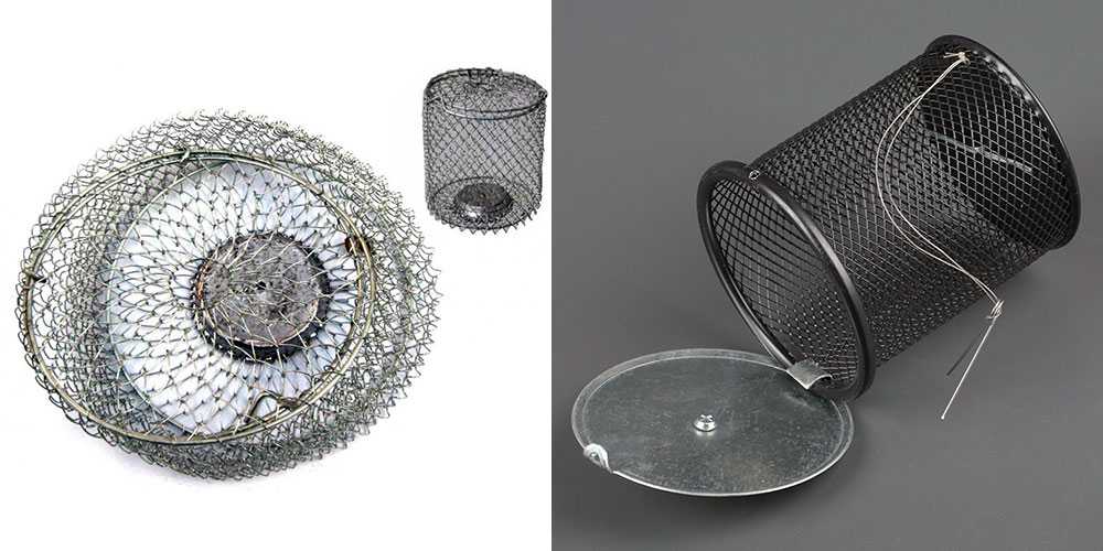 Если нужно компактно упаковаться для дальней поездки на рыбалку, складная металлическая кормушка подходит. Нескладная займет много места, лучше взять сетку-авоську или сетчатый мешок.
