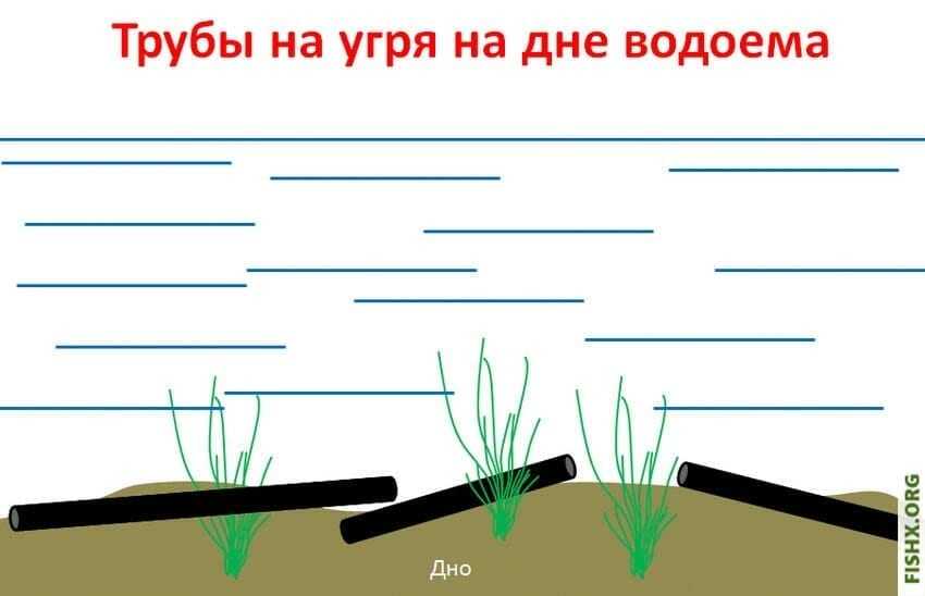 Спустя 1-2 суток, человек подходит к трубе, зажимает её с двух сторон руками и вытаскивает на берег. В 80% случаев в трубе сидел угорь.