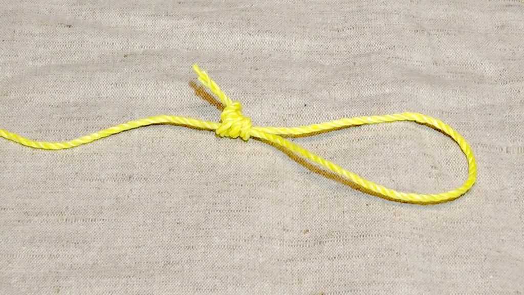 Сделайте из веревки петлю, не завязывая ее. Протяните через нее ходовой конец. Затем ходовой конец оберните вокруг коренного и опять проденьте сквозь петлю. Туго затяните.