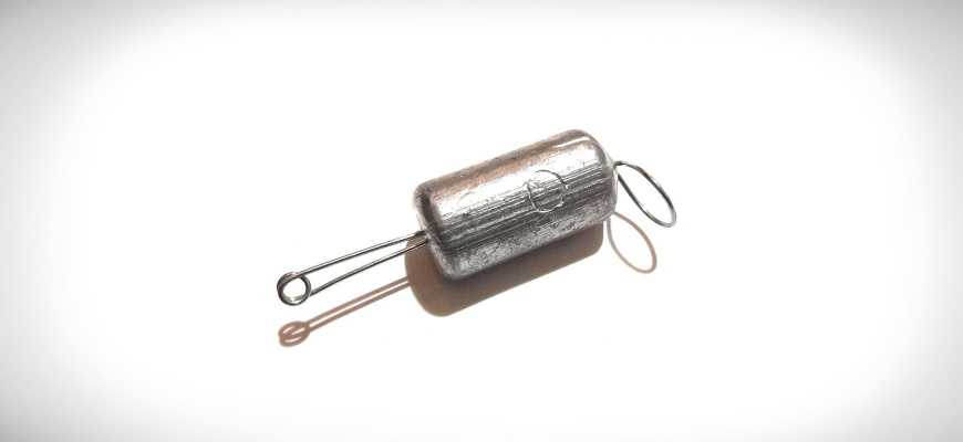 Пожалуй, наиболее известный и самый лучший отцеп при рыбалке с лодки. Представляет собой свинцовое грузило цилиндрической формы, вес которого колеблется в пределах 20–200 граммов. С боку имеет петлю из проволоки для фиксации на леске и скольжения по ней.