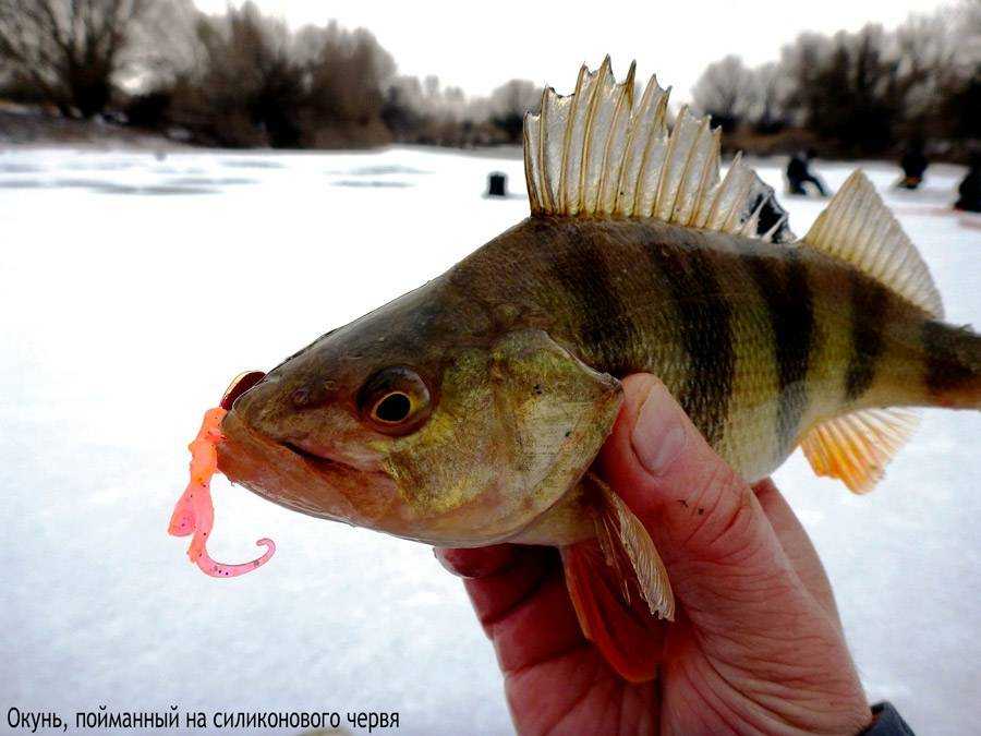 Зимой ловля окуня на силикон невозможна без правильно оборудованных снастей. Комплект должен быть чувствительным, обладать хорошей амортизацией. Правильный выбор лески и грузила — обязательное условие. В качестве лески часто используется шнур, который наматывается на катушку. Силиконовые черви и твистеры, виброхвосты с раками, слаги и октопусы — такая приманка привлекает окуня запахом и вкусом.
