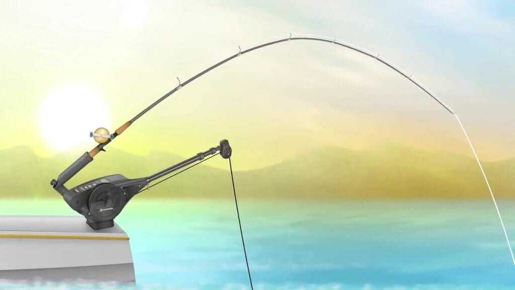 - Для максимально широкого разведения снастей используют аутригер, при помощи которого крепят выносное оборудование.