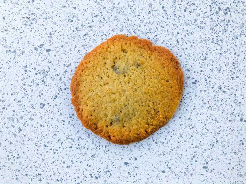 Использование слишком большого количества масла, очевидно, сделало печенья липкими на ощупь, и они были достаточно мягкими, чтобы рассыпаться в моих руках. Печенье быстро растаяло во рту, и я почувствовал на языке воздушные пузырьки, которые были видны на поверхности.