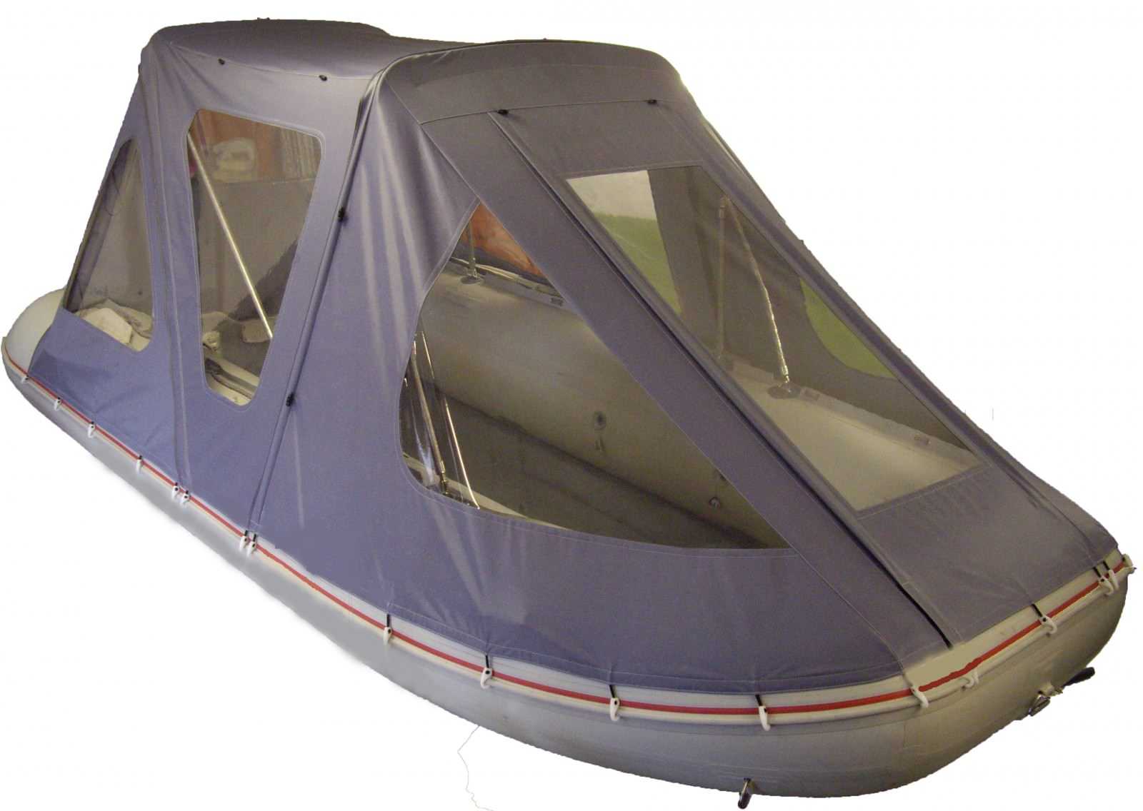 Это вид тента, фиксирующийся на раме. Такие навесы ещё именуются «тент-крыша». Трубчатая рама, изготовленная из алюминия, являет собой очень крепкую конструкцию. Каркас фиксируется к надувным бортам лодки на специализированных резиновых бобышках, приклеенных к бортам. Подобный полог способен прикрывать лишь поверху, либо покрывать и по сторонам, и поверху. Он защищает как от брызг, так и от дождика. В особенности та модель, что покрывает судно и по бокам. Плоский навес, находящийся поверху остова, прикрывает и от дождя, и от раскалённого солнца.